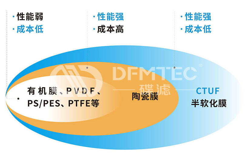 CTUF半軟化膜突破了傳統(tǒng)有機(jī)膜和無機(jī)陶瓷膜的界限,它擁有陶瓷膜的化學(xué)穩(wěn)定性,有機(jī)膜的過濾精度,以及可以與有機(jī)膜媲美的投資和運(yùn)行成本。