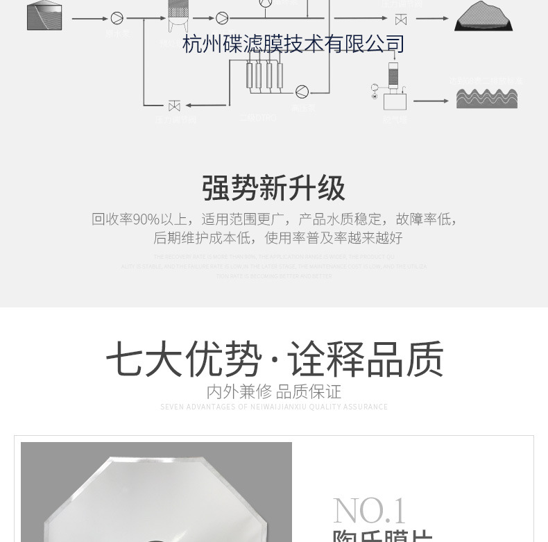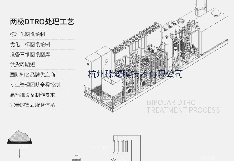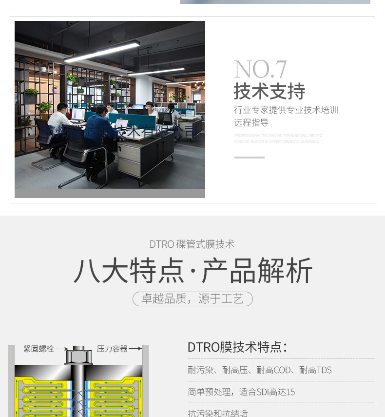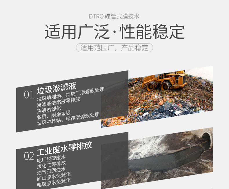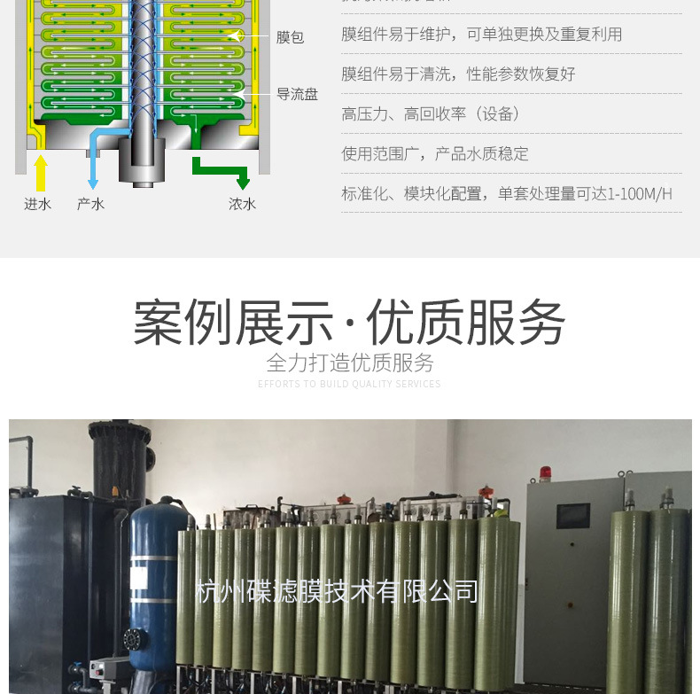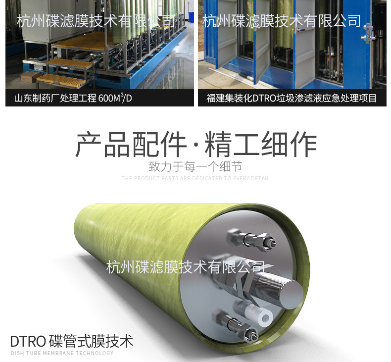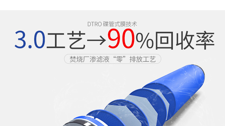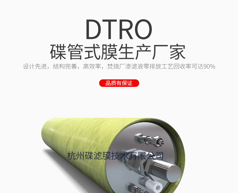 DTRO膜是DT膜技術(shù)的一個(gè)分類, DT 膜技術(shù)即碟管式膜技術(shù)(Disc Tube Module),分為DTRO(碟管式反滲透)、DTNF(碟管式納濾)、DTUF(碟管式超濾)三大類,是一種高壓型膜分離組件。該技術(shù)是專門針對(duì)高濃度料液的過濾分離而開發(fā)的,已成功應(yīng)用近30 年。