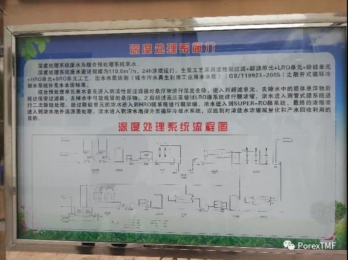 該電廠的循環(huán)冷卻水排污水通過綜合一體化設(shè)備預(yù)處理后,經(jīng)過反滲透濃縮后產(chǎn)生約36T/H的反滲透濃水。反滲透濃水中的鈣、鎂、硅等致垢離子的濃度提升數(shù)倍,需要進(jìn)一步軟化除硅才能進(jìn)入后續(xù)的反滲透。該項(xiàng)目的軟化除硅是通過投加氫氧化鈉和氯化鎂后,用POREX管式膜(TMF)系統(tǒng)進(jìn)行固液分離,產(chǎn)水進(jìn)入后續(xù)的反滲透系統(tǒng)。